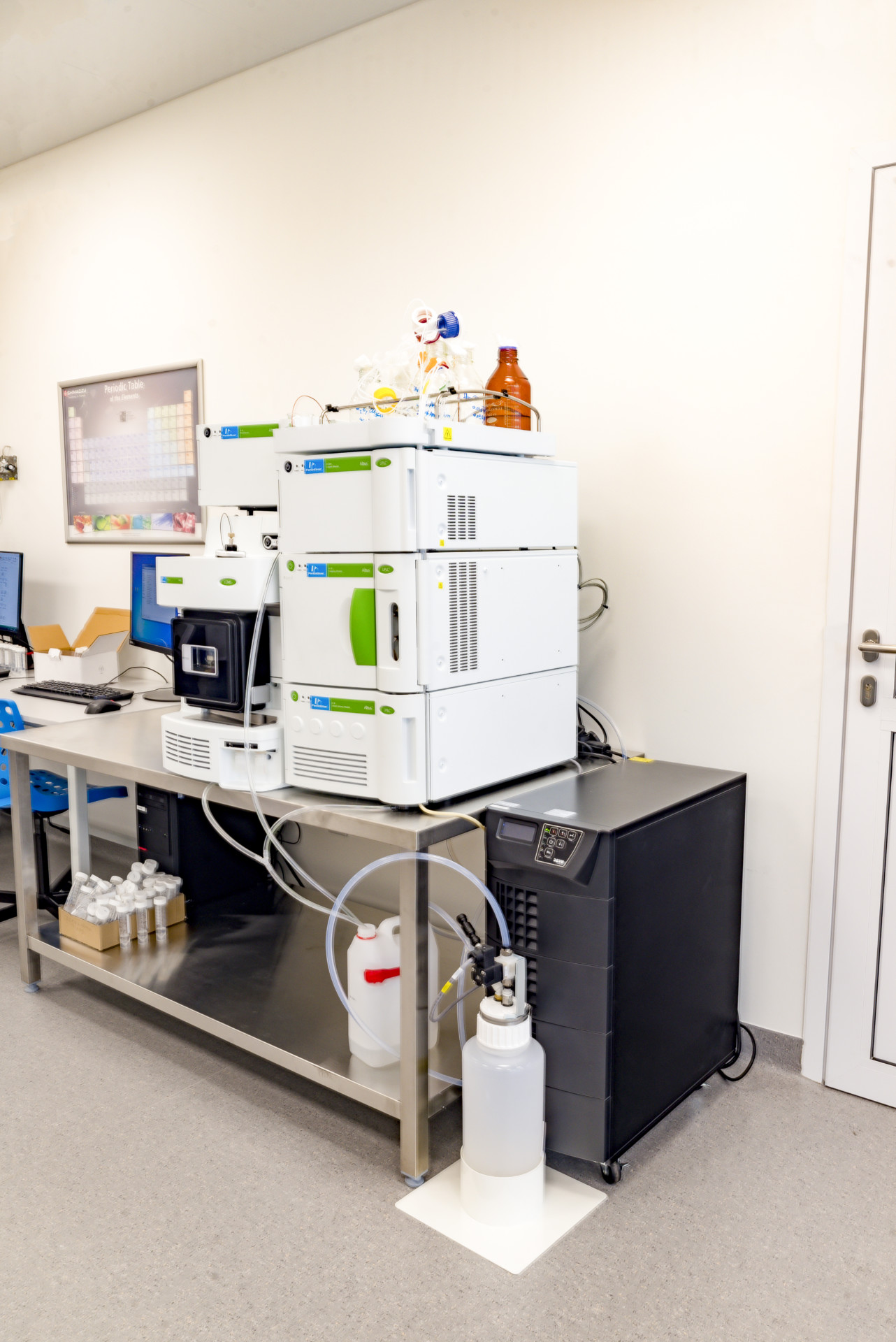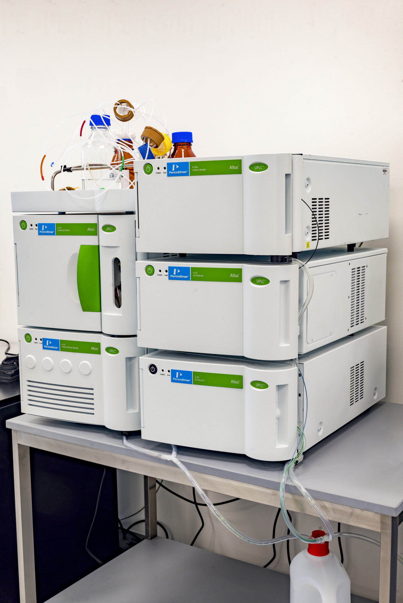 Na wyposażeniu laboratorium UNILAB są również dwa układy pozwalające na wykonanie oznaczeń przy wykorzystaniu techniki chromatografii cieczowej. Są to układy wyposażone w detektor fotodiodowy (DAD, PDA), detektor spektrofotometryczny (UV-Vis), detektor refraktometryczny (RI) oraz spektrometr mas (MS). Sprzężenie techniki chromatografii cieczowej, działającej jako wysokosprawna lub ultrasprawna chromatografia cieczowa z różnymi typami detekcji pozwala na znaczne rozszerzenie możliwości analitycznych oraz szerokie możliwości oznaczania analitów w najrozmaitszych matrycach. Pozwala przykładowo na oznaczanie zawartości parabenów w wyrobach kosmetycznych i produktach chemii gospodarczej, na oznaczanie zawartości cukrów w artykułach spożywczych oraz produktach farmaceutycznych, na zbadanie zawartości kofeiny, substancji dodatkowych i substancji słodzących w suplementach diety, czy też na analizę i identyfikację obecności składników głównych oraz zanieczyszczeń, nawet zanieczyszczeń nieznanych w artykułach i wyrobach różnych gałęzi przemysłu spożywczego, farmaceutycznego czy kosmetycznego.