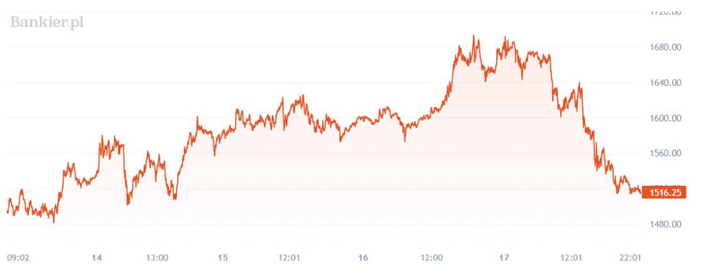 ➡ Wsparcie: 1500 USD, opór: 1600 USD.