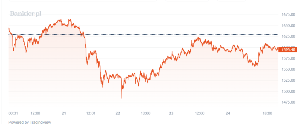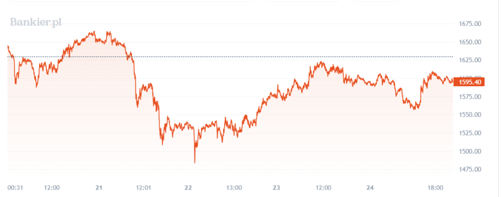 ➡ Wsparcie w rejonie 1500 USD, opór w okolicach 1620 USD.